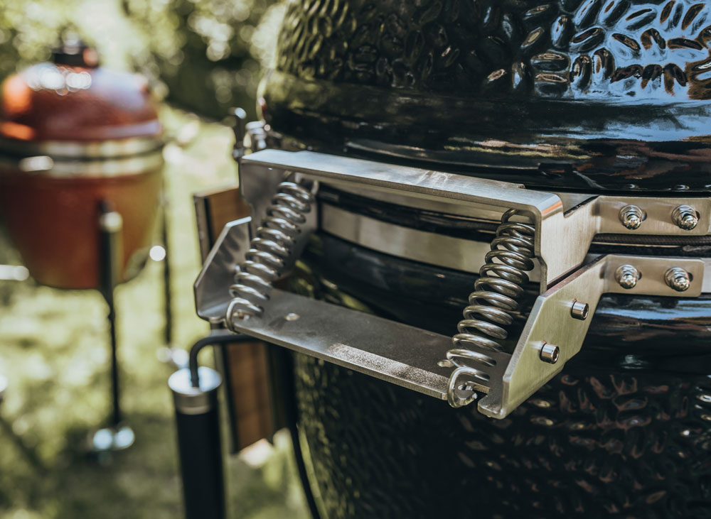 Nella versione senza telaio non viene fornito con le mensole in bambù e viene dotato di piedini in ceramica per migliorane la stabilità nel momento in cui viene appoggiato su un piano oppure inserito nel suo carrello “Buggy”, nel tavolo accessorio in Teak, appoggiato oppure inserito in una cucina da esterno. Dotazione base del Monolith Classic: accessori per cottura diretta, cottura indiretta e per affumicare ovvero Fire Box Pro con cestello in acciaio per il carbone, SGS System con due griglie di cottura a mezza luna e 2 vaschette raccogli grasso, slitta per inserire i pellet aromatizzatori, paletta rimuovi cenere e manico rimuovi griglie.
